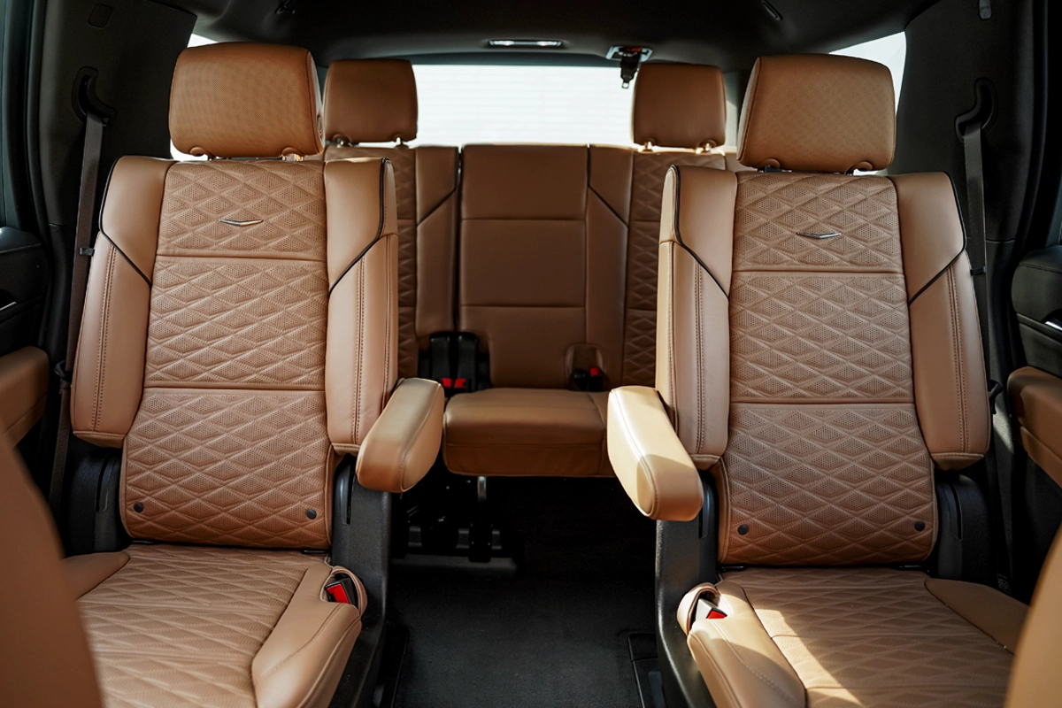Appealing Escalade Aesthetics: The 2024 Cadillac Escalade showcases a dominant and striking appearance, characterized by its bold and refined styling. This SUV epitomizes your achievement, authority, and prestige. Indulge in a seamless limousine experience while traversing the streets and boulevards of the Emirates.