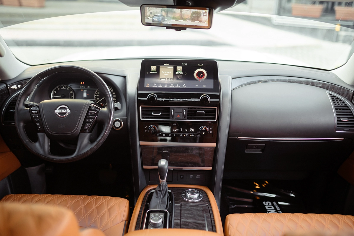 Smooth & Comfortable Ride: The Nissan Patrol Platinum boasts superior off-road capabilities. At the same time, it has incorporated significant upgrades to enhance its on-road comfort. Its hydraulic body motion control, solid suspension tuning, and well-designed powertrain combine to deliver a smooth performance on the Emirate streets and boulevards.