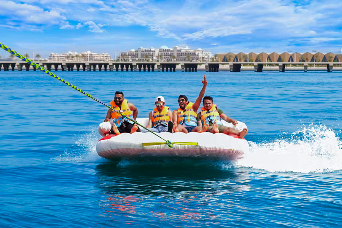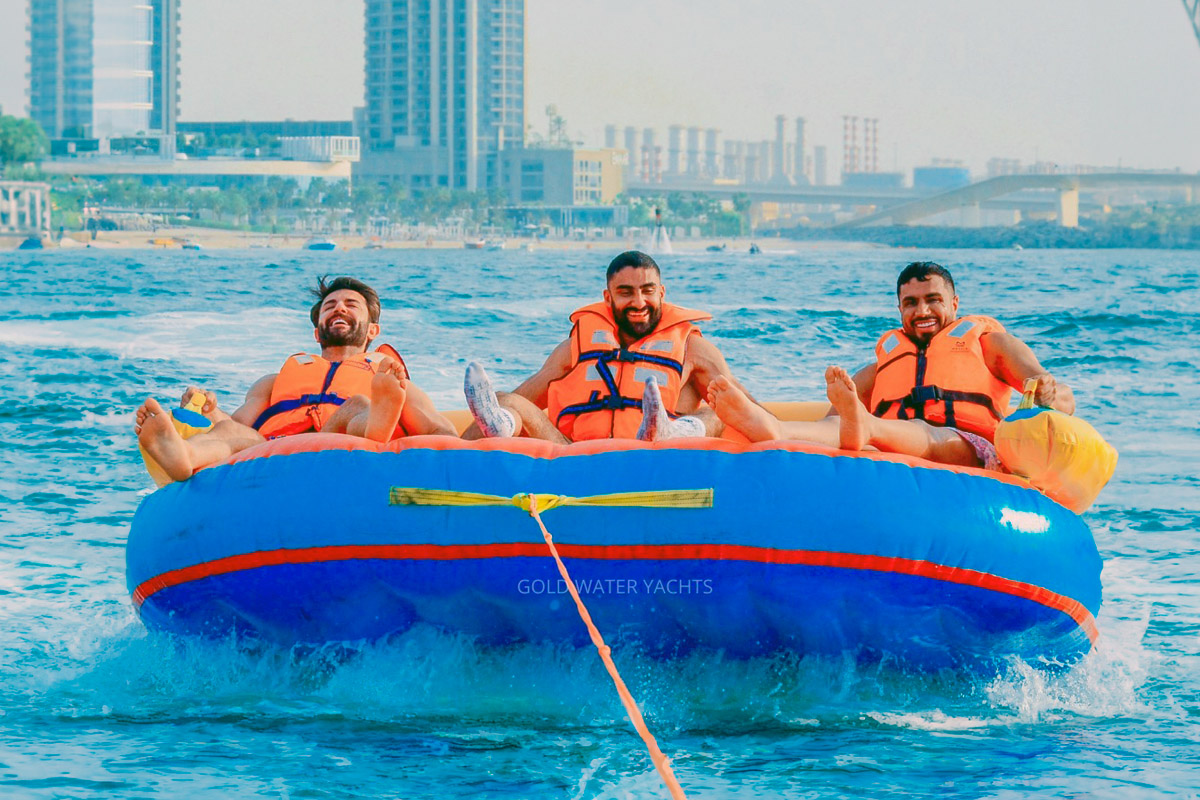 Sit comfortably, hold tight, and set off on a thrilling tubing experience with our 30-minute Donut ride in Dubai. Enjoy adrenaline-gushing speeds, splashes, occasional bumps, and airtime on the Arabian waters. Capture your best moments on the reels and show them to the world or hang them on the walls. But more importantly, create unforgettable memories with your friends and family. Treat yourself and your loved ones to a unique and the best donut ride Dubai experience. Dare to do something different and wholesome. Book your ticket today!