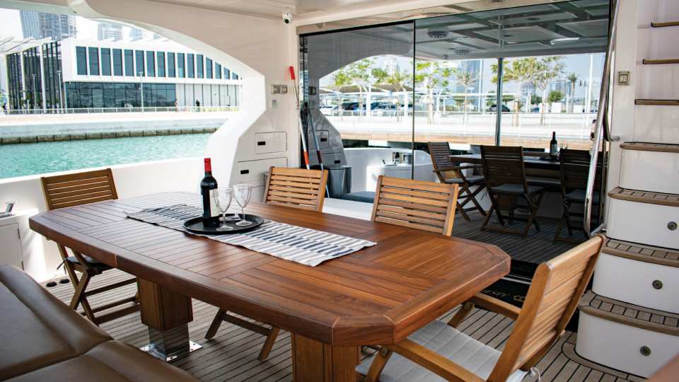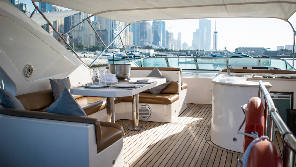 Dionysos yatımızla Birleşik Arap Emirlikleri'nde yelken açarken, seçkin olanaklar ve eşsiz zarafetle lüksün zirvesine ulaşın. Palm, Ain Dubai, Burj Al Arab, Atlantis ve daha fazlasının nefes kesen manzaralarını seyrederken Körfez sularının sakin cazibesine yelken açın. Bu etkileyici 77 fitlik Dionysos, özel kutlamalar, etkinlikler, partiler veya gezi gezileri olsun, tüm gereksinimlerinizi karşılamak üzere tasarlanmıştır. Bu yat, her güverte seviyesinde olağanüstü işçilik, birinci sınıf malzemeler, lüks dinlenme alanları ve gösterişli bir ambiyans sergileyerek eşsiz bir deneyim garanti eder. Dahası, yetenekli kaptanımız ve kendini işine adamış mürettebatımız, Körfez'in bozulmamış sularındaki deneyiminizi eşsiz seviyelere çıkarır. Özel 77 fitlik yatımızın ihtişamının tadını çıkarın ve mevcut su sporları ve aktivitelerle daha fazla eğlence katın. Bu muhteşem yatı hemen ayırtın!
