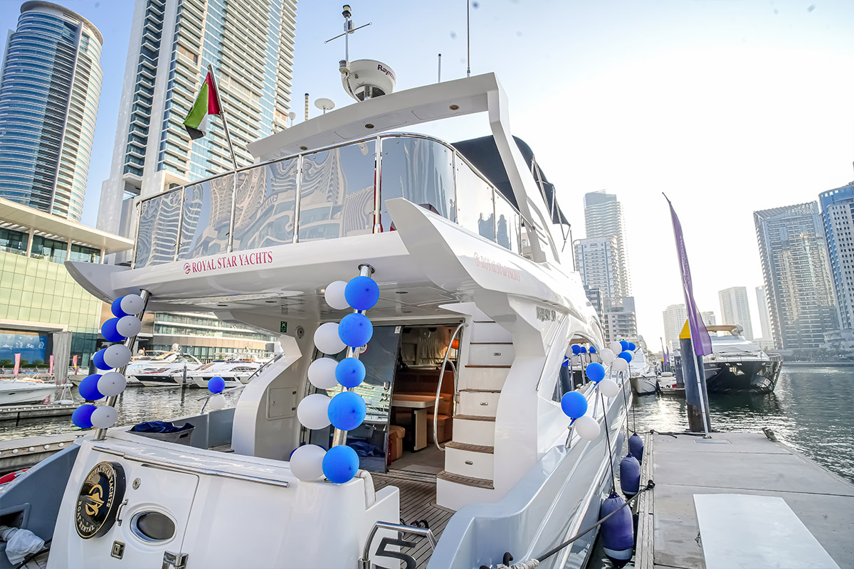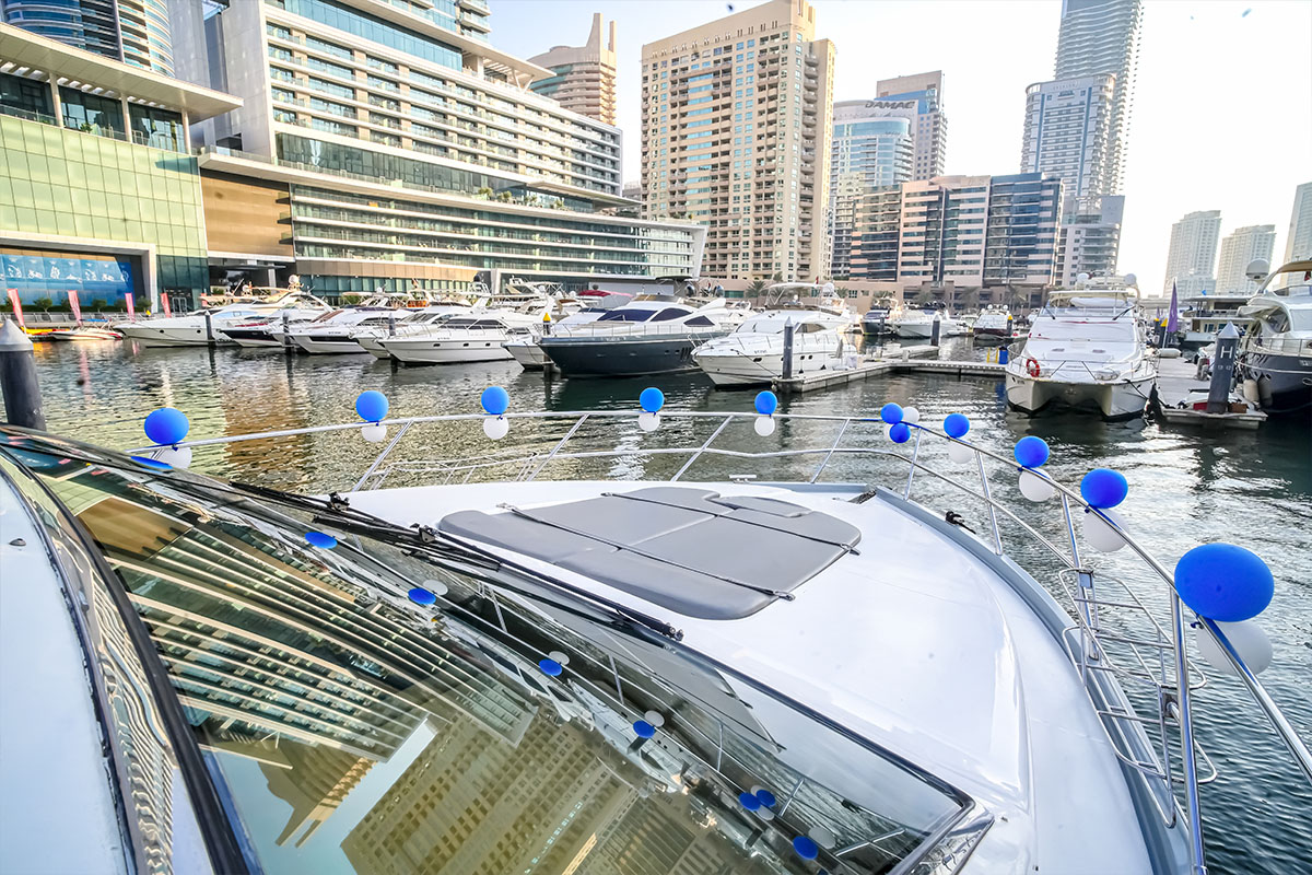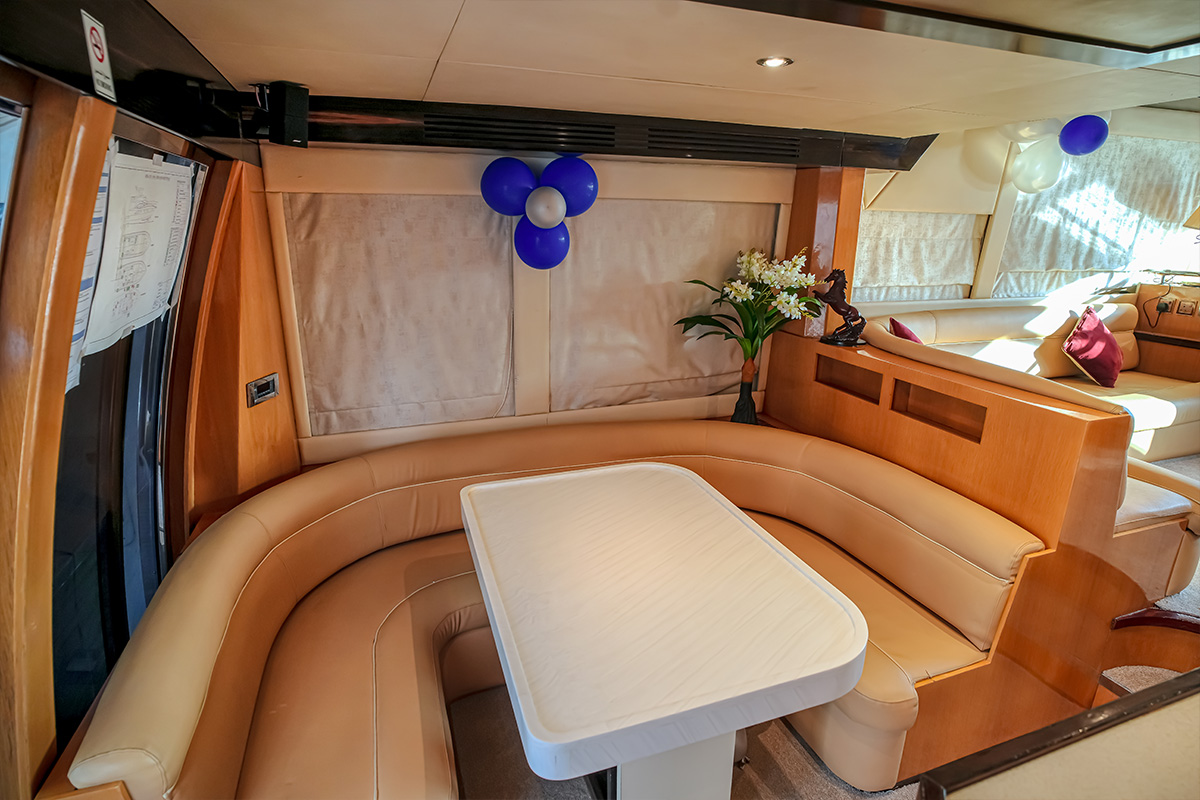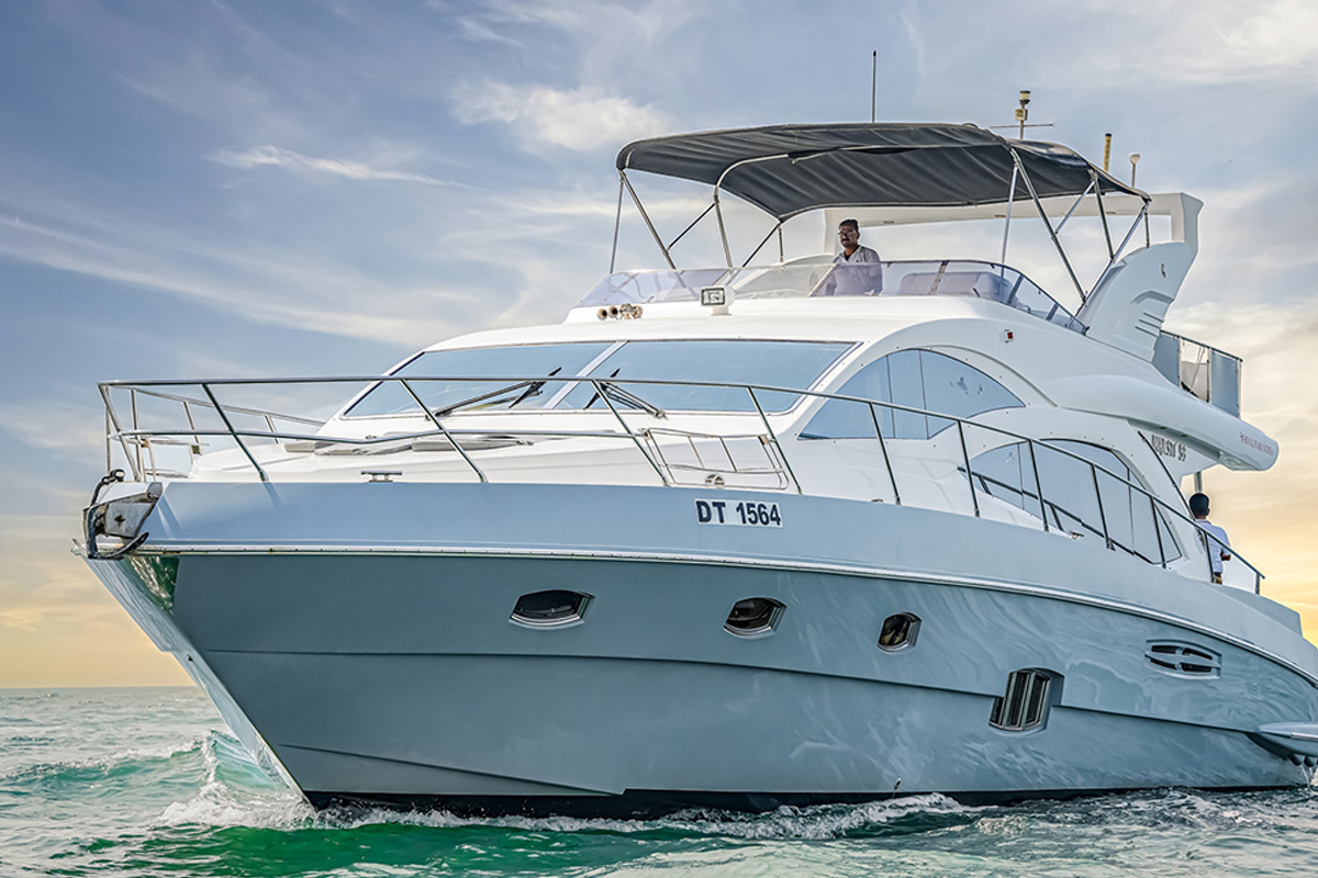 Discover the pinnacle of luxury as you glide through the stunning waters of Marina and Palm Jumeirah aboard our Majesty 59-foot yacht, featuring a selection of lavish amenities and unmatched elegance. Experience the peace and calm of the Arabian waters. Whether for special celebrations, events, parties, or unforgettable sightseeing excursions, this impressive 59-foot Majesty yacht caters to 25 guests with utmost luxury. This vessel showcases exceptional artistry, opulent materials, and a sumptuous ambiance on each level, guaranteeing an unparalleled experience. Moreover, our experienced captain and committed crew guarantee an exceptional yachting adventure in Dubai. Secure your yacht bookings now and take advantage of amazing offers!